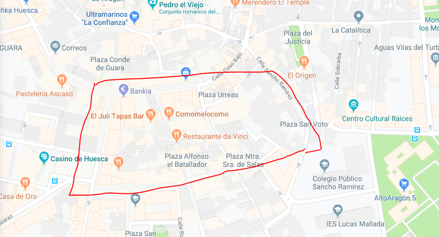 En Huesca se come muy bien y muy abundante, en cualquier sitio se comerá bien por buen precio. Pero lo que nos recomendaron en la oficina de turismo que los mejores bares/restaurantes se encontraban por esta zona: